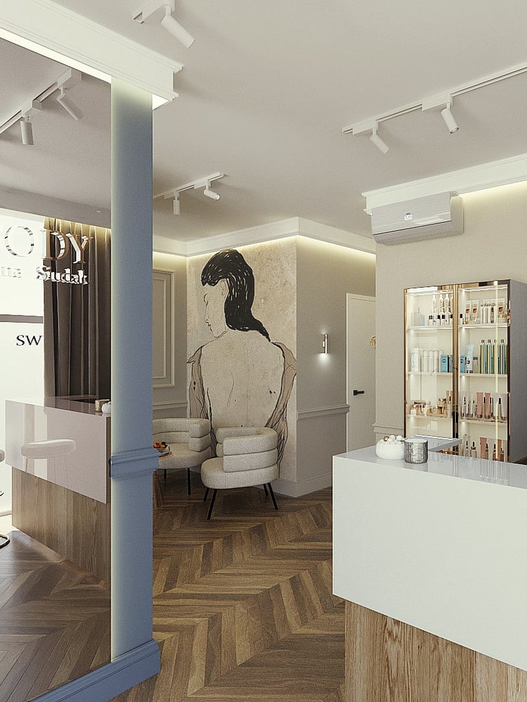 To jest nowoczesny salon piękna zaprojektowany z myślą o spokoju, estetyce i komforcie. Jasna, minimalistyczna przestrzeń oparta na naturalnych barwach sprzyja wyciszeniu i pozwala skupić się na doświadczeniu pielęgnacji. To miejsce, w którym nowoczesne podejście do urody spotyka się z harmonią i świadomym designem.