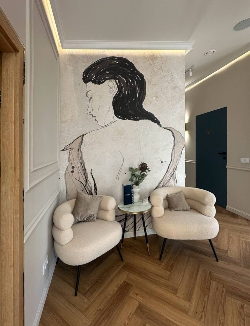 To jest nowoczesny salon piękna zaprojektowany z myślą o spokoju, estetyce i komforcie. Jasna, minimalistyczna przestrzeń oparta na naturalnych barwach sprzyja wyciszeniu i pozwala skupić się na doświadczeniu pielęgnacji. To miejsce, w którym nowoczesne podejście do urody spotyka się z harmonią i świadomym designem.