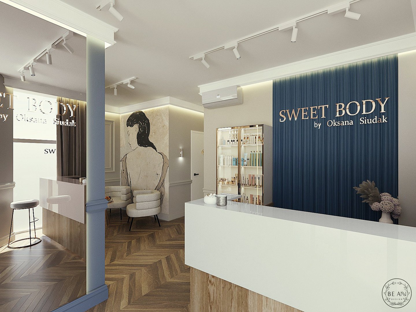 Kapitalny remont z przebudową tego salonu kosmetycznego został wykonany w zaledwie 6(!) tygodni. Udało się to osiągnąć tak szybko, ponieważ klientka zamówiła projekt już pół roku